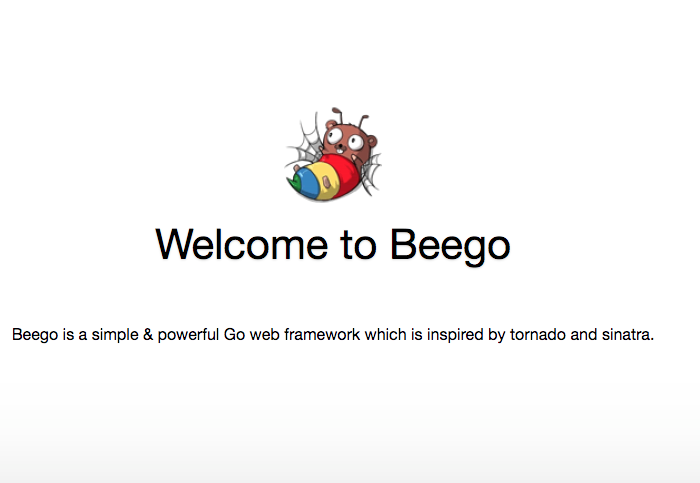 进入项目目录 执行 bee run 命令,在浏览器输入网址:127.0.0.1:8080,显示如下: