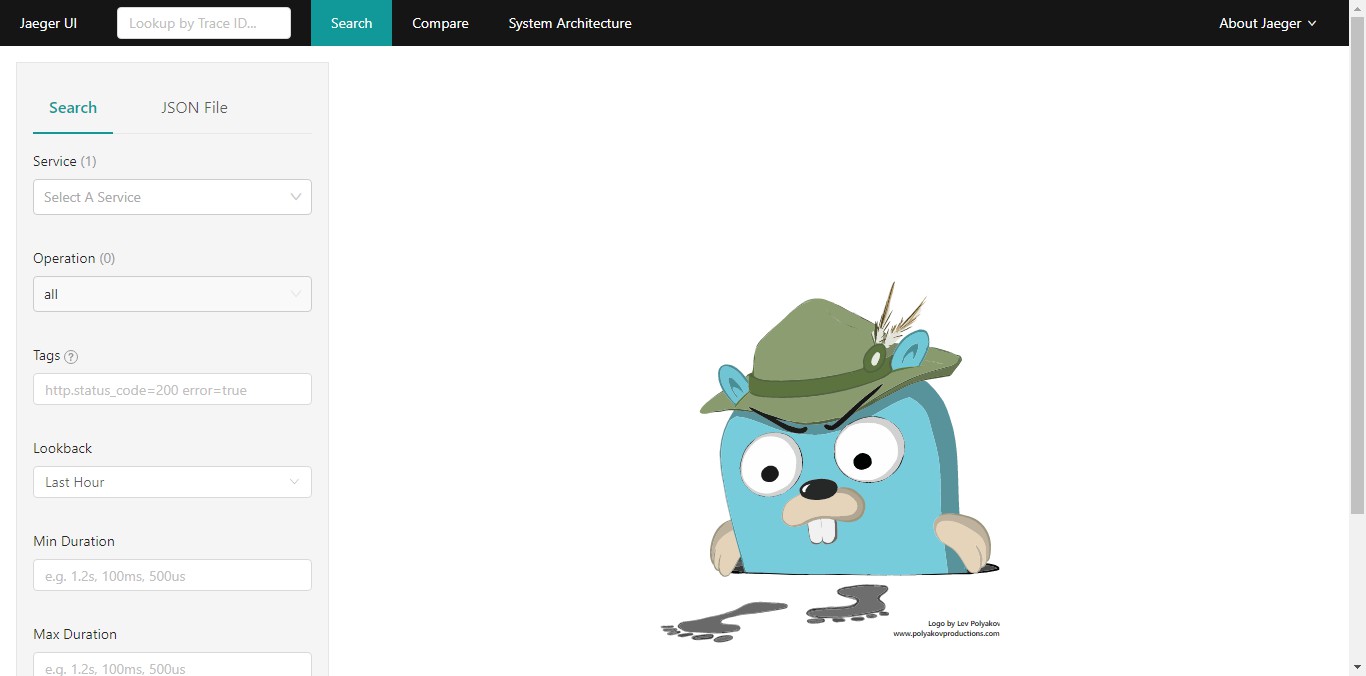 后面我们生成的链路追踪信息会推送到此服务,而且可以通过 Jaeger UI 查询这些追踪信息。