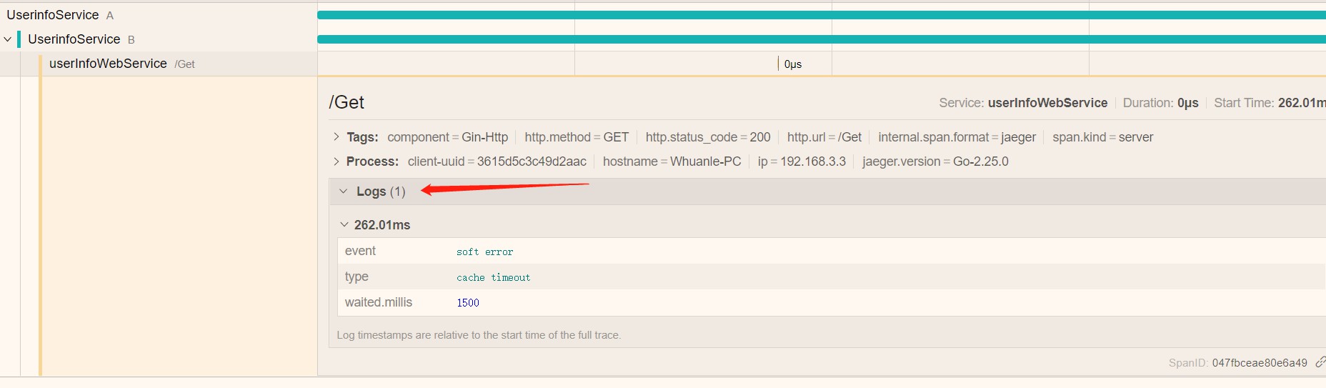 前面写示例的时候忘记把日志也加一下了。。。日志其实很简单的,通过 span 对象调用函数即可设置。