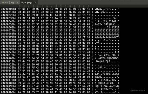 然而,一个正常的 jpeg 图片文件的内容如下图所示: