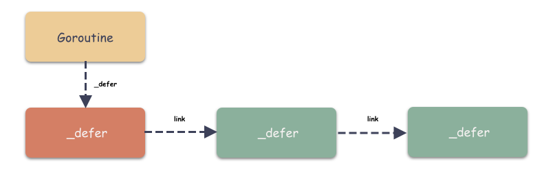 // 把这个 _defer 结构作为一个节点,挂到 goroutine 的链表中