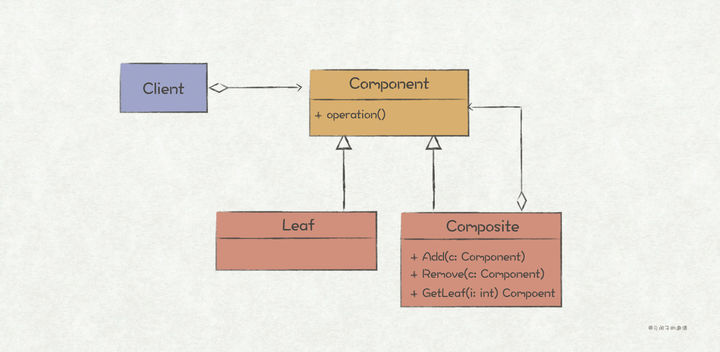 我们都知道,组合所表示的语义为“has-a”,也就是部分和整体的关系,最经典的组合模式描述如下: