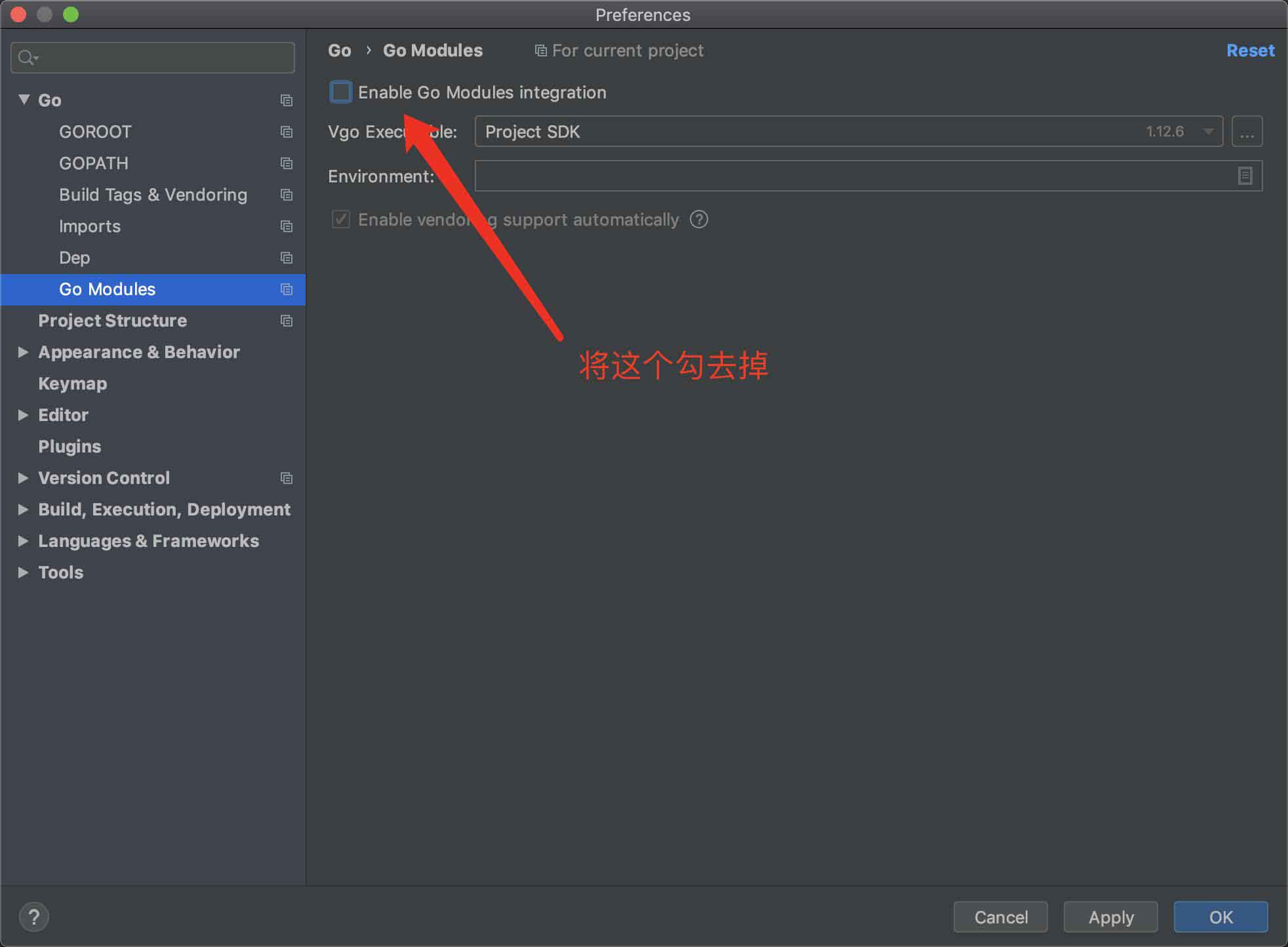 在golang的设置里面将图中这个勾去掉