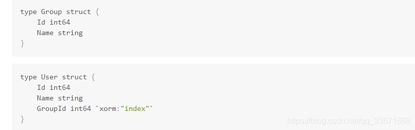 然后使用联合查询,先把两个结构体结合成一个结构体,假如如下,在UserGroup中使用User和Group匿名结构体,