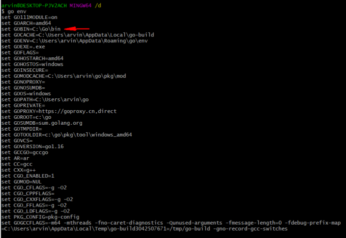 我的环境参考:go env -w GOBIN=C:\Go\bin