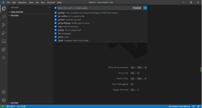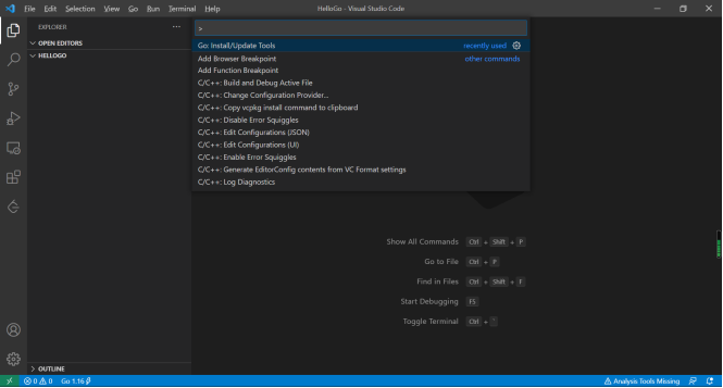 按住Ctrl+Shift+P 输入Go:Install/Update Tools