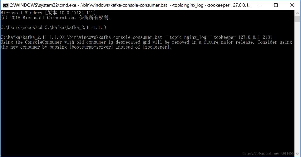 .\bin\windows\kafka-console-consumer.bat --topic nginx_log --zookeeper 127.0.0.1 2181