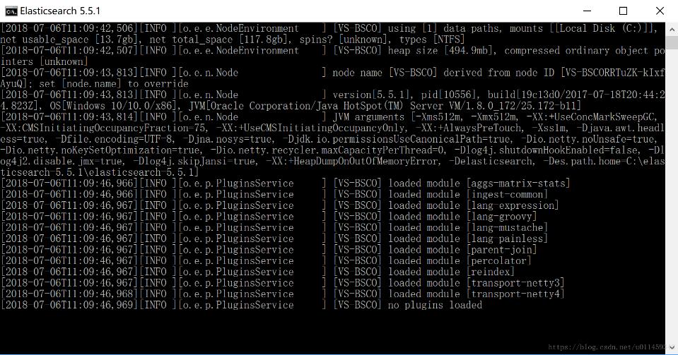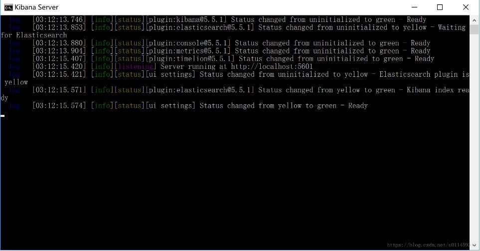 这是我们的ES版本是5.5.1的 已经跑起来了 接着启动我们的kib