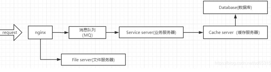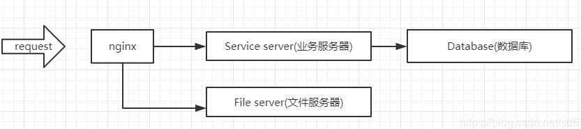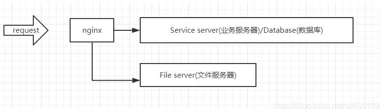 但是,突然某一天,来了一个新需求,我们服务器上不只是简单的储存一些文本信息,我们需要储存图片甚至视频,显然直接在一台主机上再部署一个文件服务是不科学的,因为它会占用大量的流量,这时候我们就要考虑单独使用一个文件服务器了,所以我们调整一下架构: