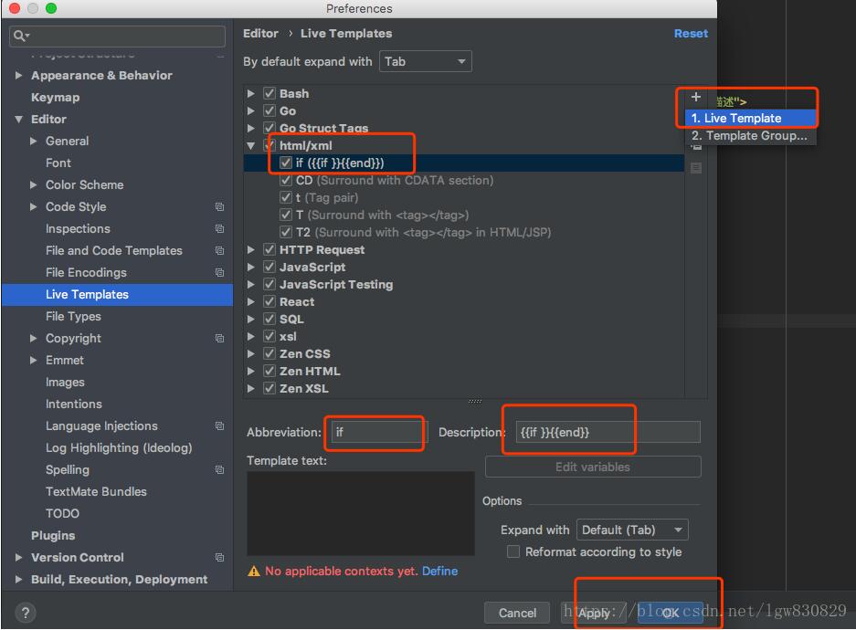 按顺序是在editor->live templates 中 选择添加