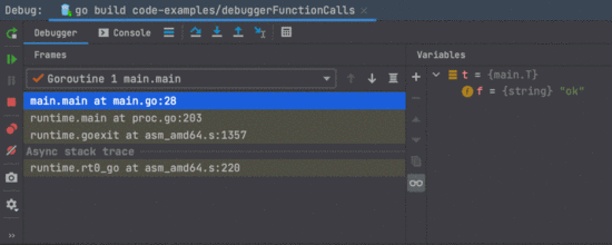 调试器中新的转储 Goroutines(Dump Goroutines) 图标使您可以在调试会话期间轻松地在堆栈中查找包含指定字符串的 goroutine。只需单击该图标即可在单独的窗口中打开转储。