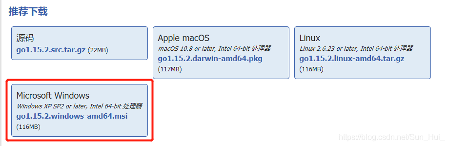 下载地址:https://studygolang.com/dl,注意选择windows版本