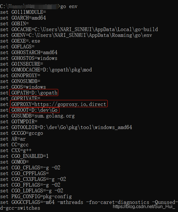 此时,再次执行 go env 命令就会发现 GOPROXY 变量的值已被修改,具体如上图所示。