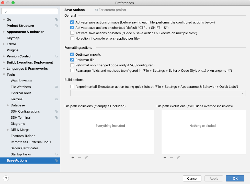1.自动保存格式化。避免因代码未格式化提交到git历史里。Preferences ->Plugins搜索 save actions,然后设置自动保存格式化。