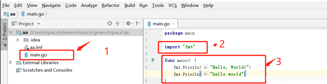 然后接可以在创建的工程里面新建go 程序了