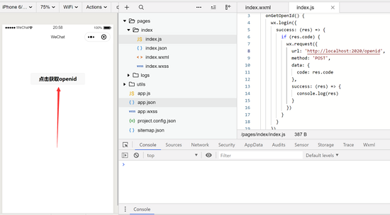 <!--index.wxml--> <view class="container"><button bindtap="onGetOpenId">点击获取openid</button> </view>