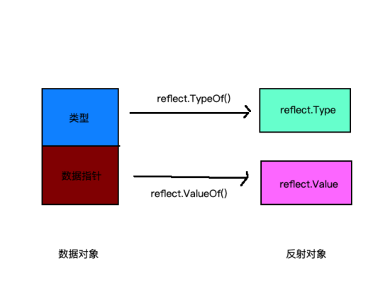 给定一个数据对象,可以将数据对象转化为反射对象 Type 和 Value 。