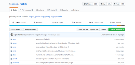 所以我们可以直接克隆mobile的库,就是上面的这个链接 https://github.com/golang/mobile