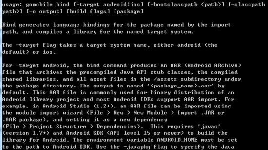 gomobile bind -o app/hello.aar -target=android golang.org/x/mobile/example/bind/hello