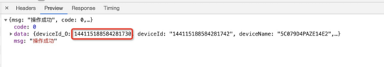 Go服务返回的json格式如下,其中deviceId_O为:144115188584281742