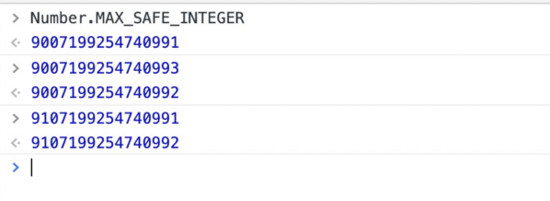 Javascript提供的Number对象提供了一个MAX_SAFE_INTEGER,这是一个固定值就是:9007199254740991。那么超出这个范围就怎么不安全了呢?看例子: