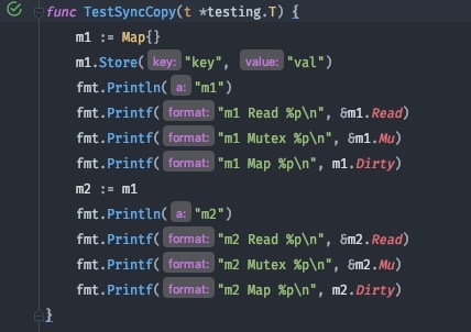 还有注意在使用sync.Map时切忌不要将其拷贝, go源码中有对sync.Map注释到” A Map must not be copied after first use.”因为当sync.Map被拷贝之后, Map类型的dirty还是那个map 但是read 和 锁却不是之前的read和锁(都不在一个世界你拿什么保护我), 所以必然导致并发不安全(为了写博我把sync.Map代码复制出来一份把私有成员改成可外部访问的打印指针)