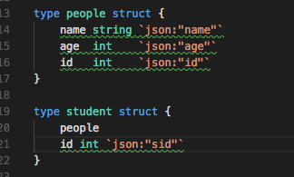 伤脑筋啊,我仔细看了半天,发现在定义的people和student两个结构体下边有绿色的波浪线(我用的vscode),像下边这样: