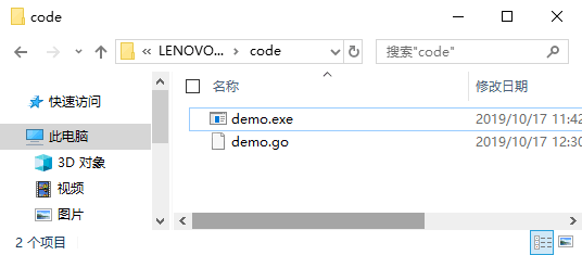 go build 命令对我们上一节编写的程序进行编译,运行结果如下所示:D:code> go build .demo.go