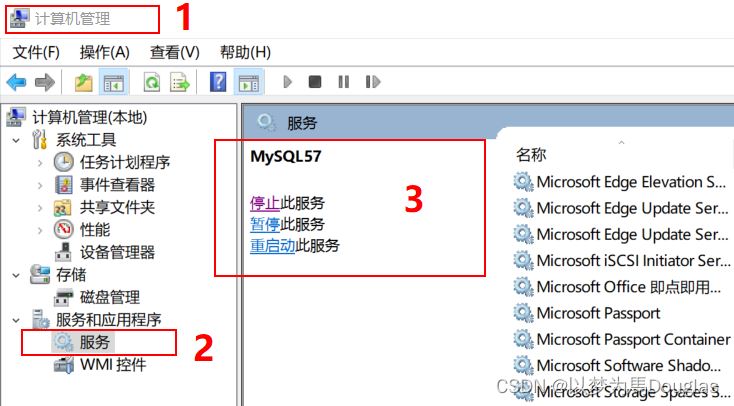 【第九步】通过windows计算机管理->服务->MySQL57启动。若没有意外应该就恢复数据,即可启动成功了,之前的数据也都会恢复成功。