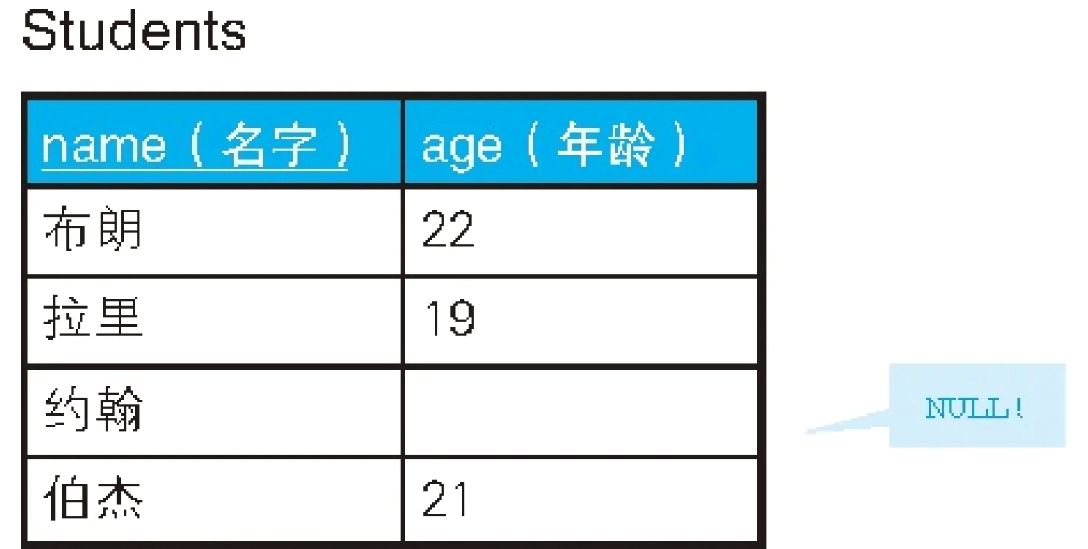 若要查到所有学生需要再加上一个条件:OR age IS NULL