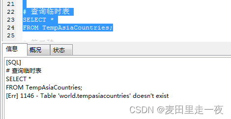 # 查询临时表 SELECT * FROM TempAsiaCountries;