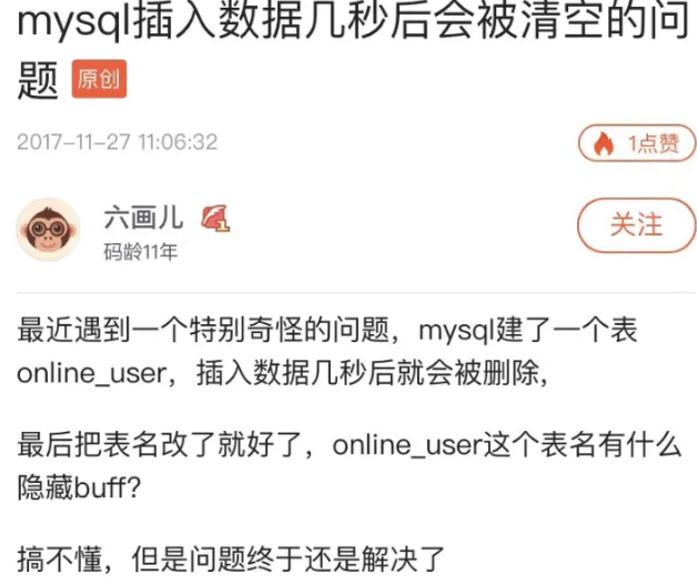 Mysql写入数据十几秒后被自动删除了如何解决