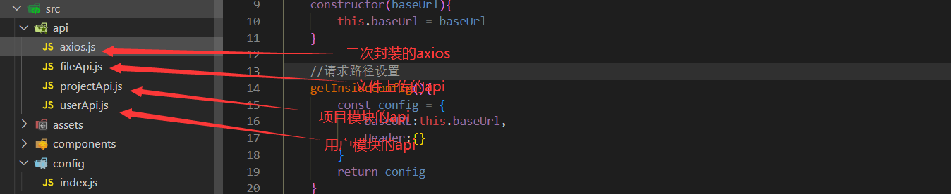 首先创建两个文件夹在src目录下;api和config