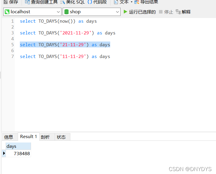 今天在项目里看到的sqlserver的days()函数,计算从0年开始到给定时间的天数,现在要修改为mysql语法,有个很奇怪的现象奥,同样都是今天2021-11-30,sqlserver的days()函数和mysql的TO_DAYS()函数计算出来的天数并不一样,这个我不太明白,知道的各路大牛可以留言给弟弟解下惑,谢谢