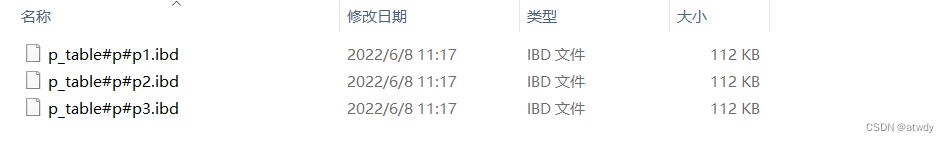 简要的说,分区就是将表物理截断,但在逻辑上依然是一个整体,开发人员在数据操作时仍然是对这个整体大表进行操作,之后由数据库底层自己去寻找对应的分区进行操作,数据库底层寻找分区这个过程对开发人员来说是透明的,这样在数据操作时可以只对特定分区操作以提高效率,存储时也可以将不同分区的物理文件分开存放,下面是一个有3个分区(p1、p2、p3)的表(p_table)的实际存储