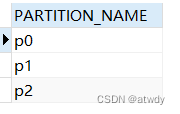 hash分区不能指定分区名,会默认创建名为pn的分区,n从0开始自增。上面这段代码会创建p0,p1,p2三个分区,分区名可以通过下面的sql查看,
