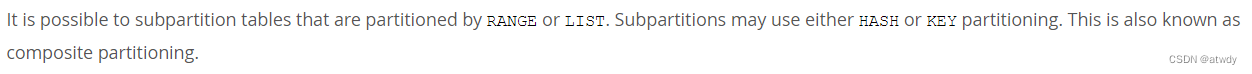 文档地址:https://dev.mysql.com/doc/refman/8.0/en/partitioning-subpartitions.html,里面有这么一段话,