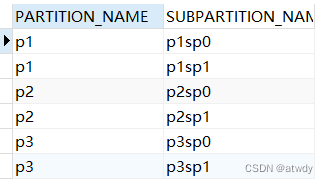 通过select partition_name, subpartition_name from information_schema.partitions where table_schema = schema() and table_name = 'subpart_table';