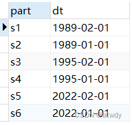 insert into subpart_table values('1989-01-01'), ('1989-02-01'),