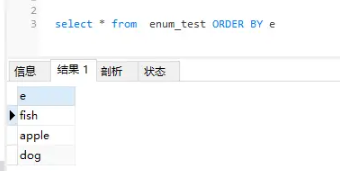 e enum('fish','apple','dog') NOT NULL