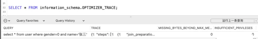 INSUFFICIENT_PRIVILEGES 表示是否有权限查看优化过程,0是,1否