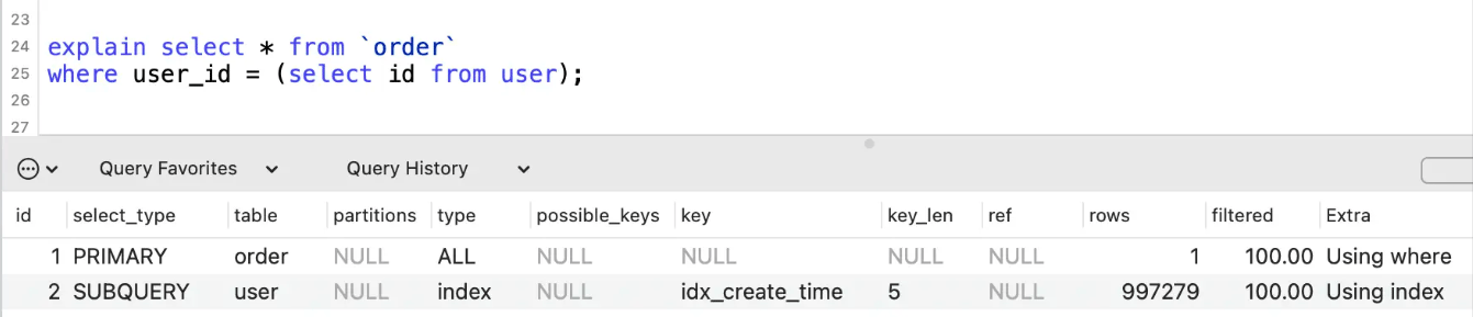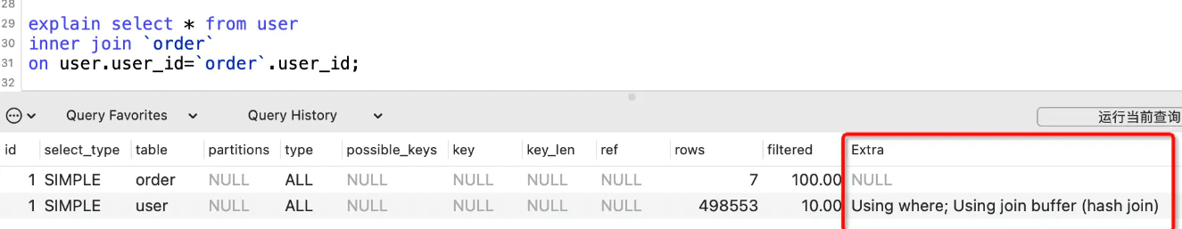 下面的示例中user_id在两张表中都没有建索引。