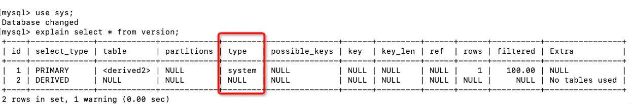 当表中只有一行记录,也就是系统表,是 const 类型的特列。