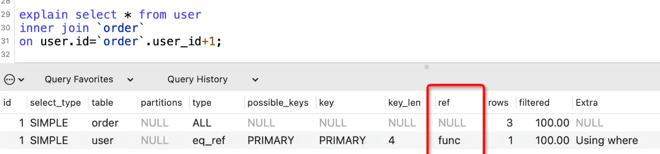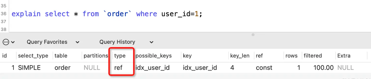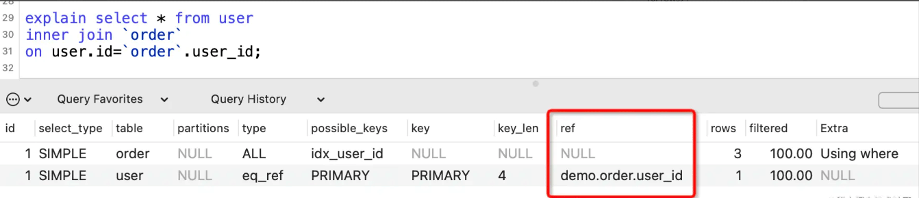 表示where语句或者表连接中与索引比较的参数,常见的有const(常量)、func(函数)、字段名。
