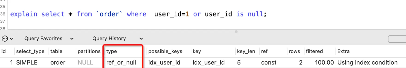 表示使用非唯一性索引进行等值查询,并且包含了null值的行。
