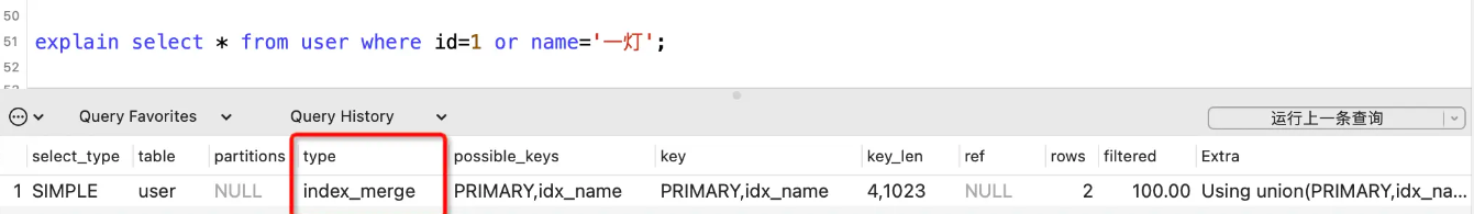 表示用到索引合并的优化逻辑,即用到的多个索引。