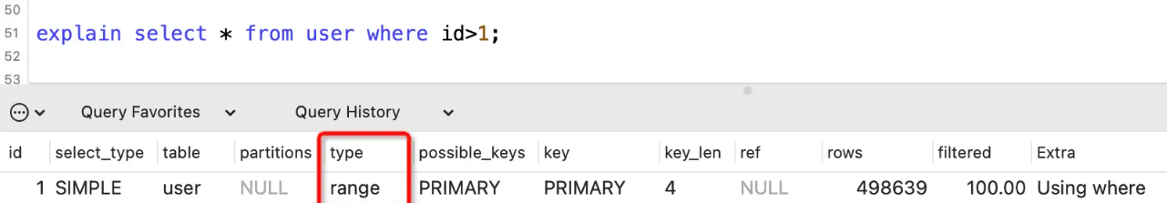 表示用到了索引范围查询。