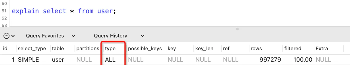 type表示表连接类型或者数据访问类型,就是表之间通过什么方式建立连接的,或者通过什么方式访问到数据的。
