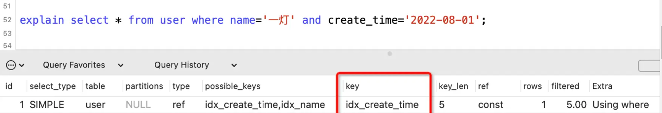 表示实际查询用到索引列。