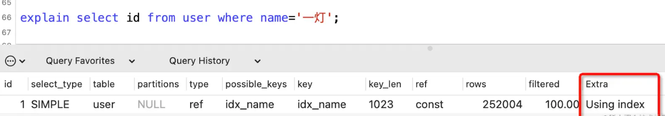 表示用到了覆盖索引,即在索引上就查到了所需数据,无需二次回表查询,性能较好。